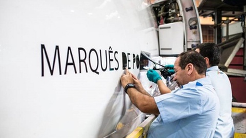 A pintura do nome na aeronave aconteceu na manhã desta segunda-feira, no Hangar 6 da TAP, e contou com a presença de Tomás Daun e Lorena, descendente de Marquês de Pombal, e de Ramiro Sequeira, Chief Operating Officer da Companhia.