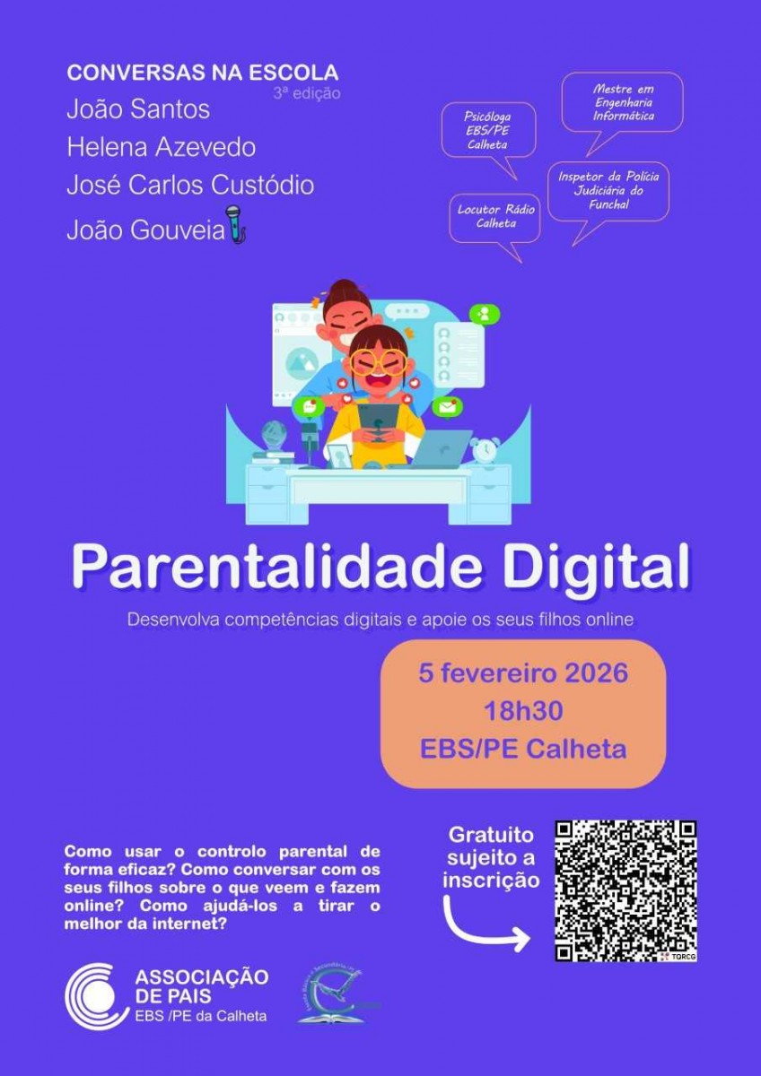 18h30 - Tertúlia ‘Parentalidade Digital Positiva’, promovida p/ Associação de Pais da Escola Básica e Secundária da Calheta, estabelecimento de ensino onde decorre a iniciativa.