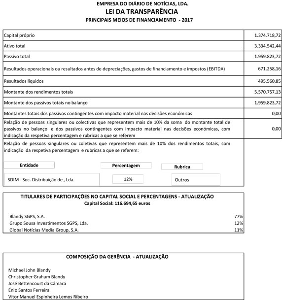 TRANSPARÊNCIA DA TITULARIDADE E DA GESTÃO DA EMPRESA DO DIÁRIO DE NOTÍCIAS, LDA.
